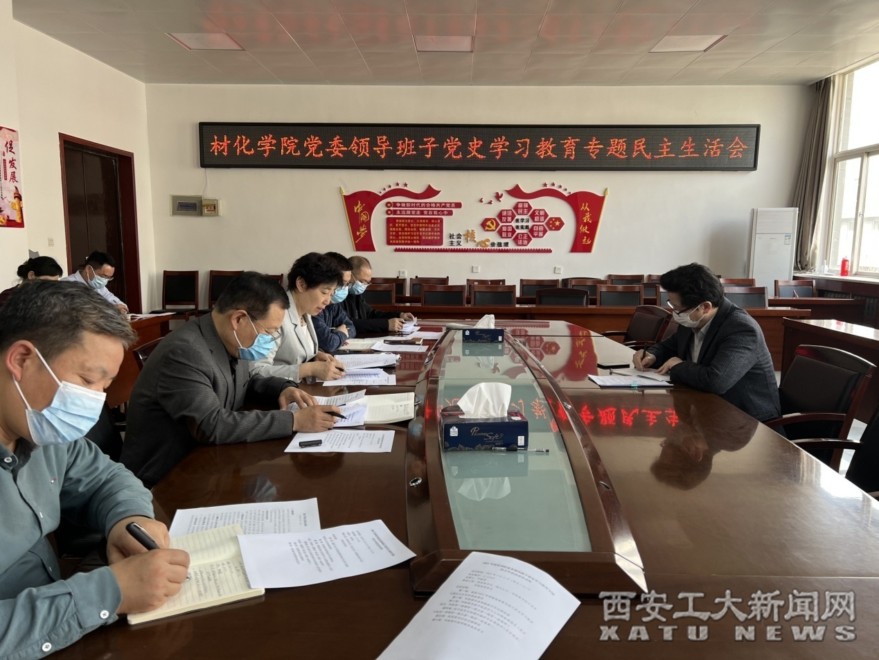 (本网讯)按照校党委工作部署,材化学院于3月11日14时在工3-410召开党委领导班子党史学习教育专题民主生活会。校党委书记刘卫国参加会议,会议由材化学院党委书记呼晓青主持。会前,材化学院制定了《2021年材化学院党委领导班子党史学习教育专题民主生活会方案》,采取集中+自学模式深入学习习近平总书记“七一”重要讲话、关于教育的重要论述以及来陕考察重要指示精神、习近平总书记在党的十九届六中全会、庆祝中国共产党成...