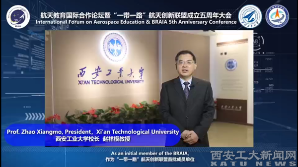 (本网讯)在近日召开的“航天教育国际合作论坛暨‘一带一路’航天创新联盟成立五周年大会”上,校长赵祥模以视频形式对联盟表达祝福。在第七个中国航天日到来之际,“航天教育国际合作论坛暨‘一带一路’航天创新联盟成立五周年大会”在西北工业大学以“线上+线下”形式召开。活动由“一带一路”航天创新联盟(以下简称“联盟”)主办,联盟各成员单位代表、联合国外太空司代表通过线上、线下方式参加本次会议。赵祥模表示:“...