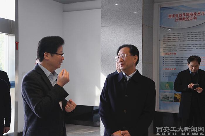 (本网讯)3月3日,陕西省政协副主席、省科技厅厅长孙科一行来米乐(中国)一站式服务平台调研。校党委书记刘卫国,副校长陈建陪同考察参观。孙科一行来到科技部光学先进制造与光电检测国际科技合作基地,实地参观了解基地建设情况,刘卫国围绕基地开展的主要研究内容、取得的成果、具体应用领域等内容进行了介绍。随后,孙科一行还参观了学校智慧工厂、新能源科学与技术研究院、陕西省数字化精密电解加工技术工程中心、中试基地等场所,分别听取了相...