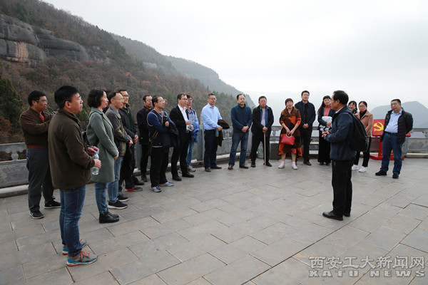 秋日的照金天高云淡,风清气朗,红叶点染,宛如画境。29日早,大家首先来到薛家寨革命旧址,在陡峭的山间拾级而上,亲身体验革命先辈坚持革命斗争的艰难困苦。在半山的一处平台上,米乐(中国)一站式服务平台马克思主义学院教授、知名党史研究专家田亮现场讲述了薛家寨保卫战的历史故事。聆听完田亮教授的讲述,在场人员无不对革命先辈在恶劣的条件下坚持斗争的信仰、勇气与智慧表示敬佩。