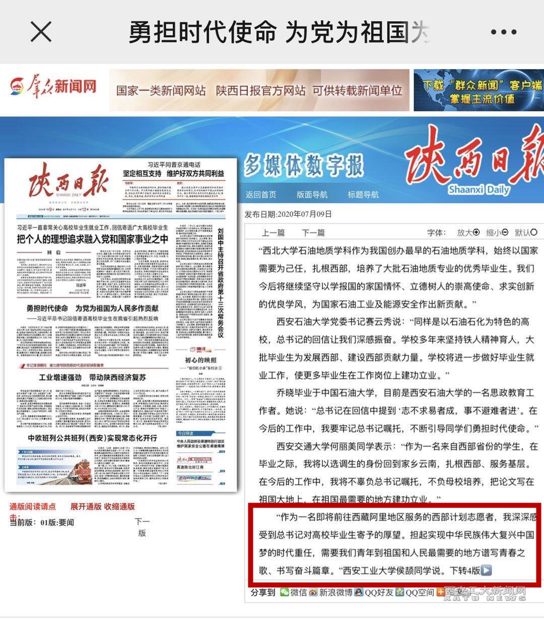 西安工大学子积极学习回信精神的感想,也受到了媒体的关注。