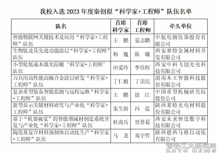 (本网讯)近日,陕西省科学技术厅公布了秦创原2023年度“科学家+工程师”队伍入选名单。米乐平台王鹏等8位老师科研团队与企业深度合作,成果入选“科学家+工程师”队伍。