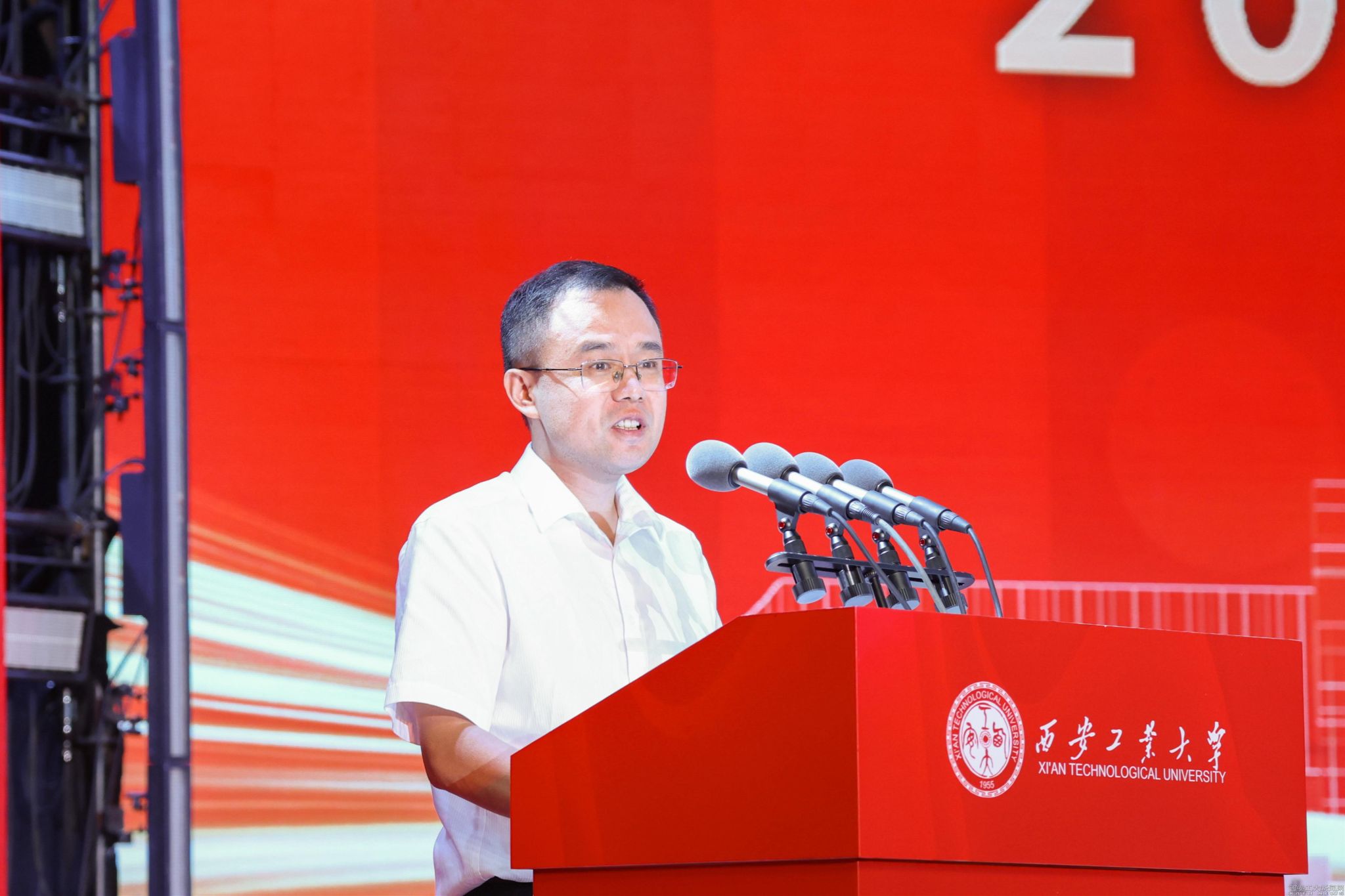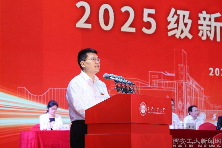 (本网讯)9月12日上午,2025级新生开学典礼在未央校区举行。校党委书记侯成义,校长姚尧,校党委副书记、纪委书记、监察专员王发合,校党委副书记马福,副校长刘发林、陈建、何春水,总会计师段小存及相关职能部门、各学院负责人出席典礼。典礼由副校长闫莉主持。