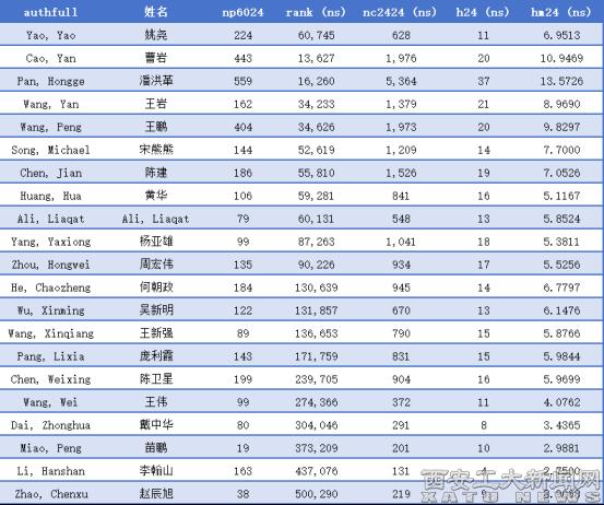 注:np6024:1960-2024年发文总量;rank (ns):他引排名;nc9624(ns):1996-2024年他引次数;h24(ns):2024年h指数(他引);hm24(ns):2024年hm指数(他引)