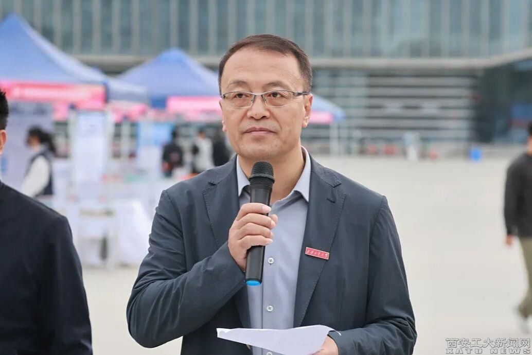 马福在致辞中热烈欢迎校友企业家返校,并衷心感谢校友们对母校发展的持续支持。他指出,本届招聘会汇聚了70余家优秀校友企业,提供涵盖多领域的优质岗位,无论是企业数量还是岗位规模均创历届之最,充分体现了校友企业对母校人才培养质量的高度认可。他鼓励毕业生把握机遇,展现西安工大学子风采。