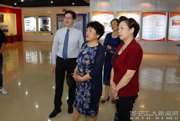 分享会前,刘卫国、雷亚萍陪同陈乃霞参观了校史馆。