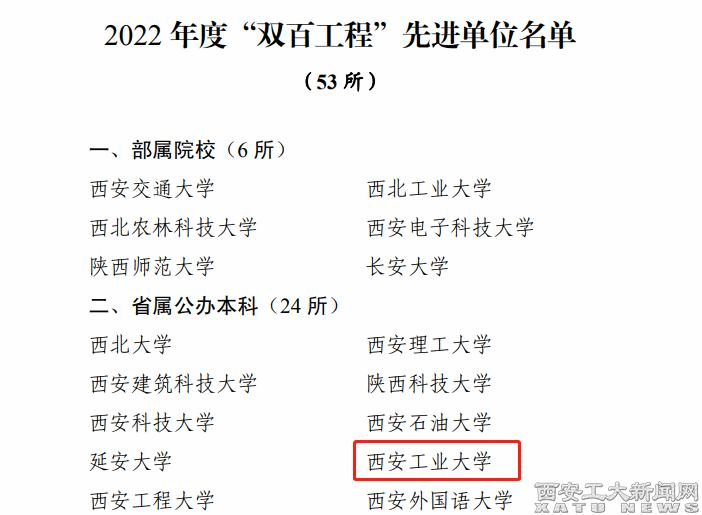 (本网讯)近日,中共陕西省委教育工委、陕西省教育厅印发了《关于表彰2022年度“双百工程”先进单位的通报》,米乐(中国)一站式服务平台获评2022年度全省“双百工程”先进单位。
