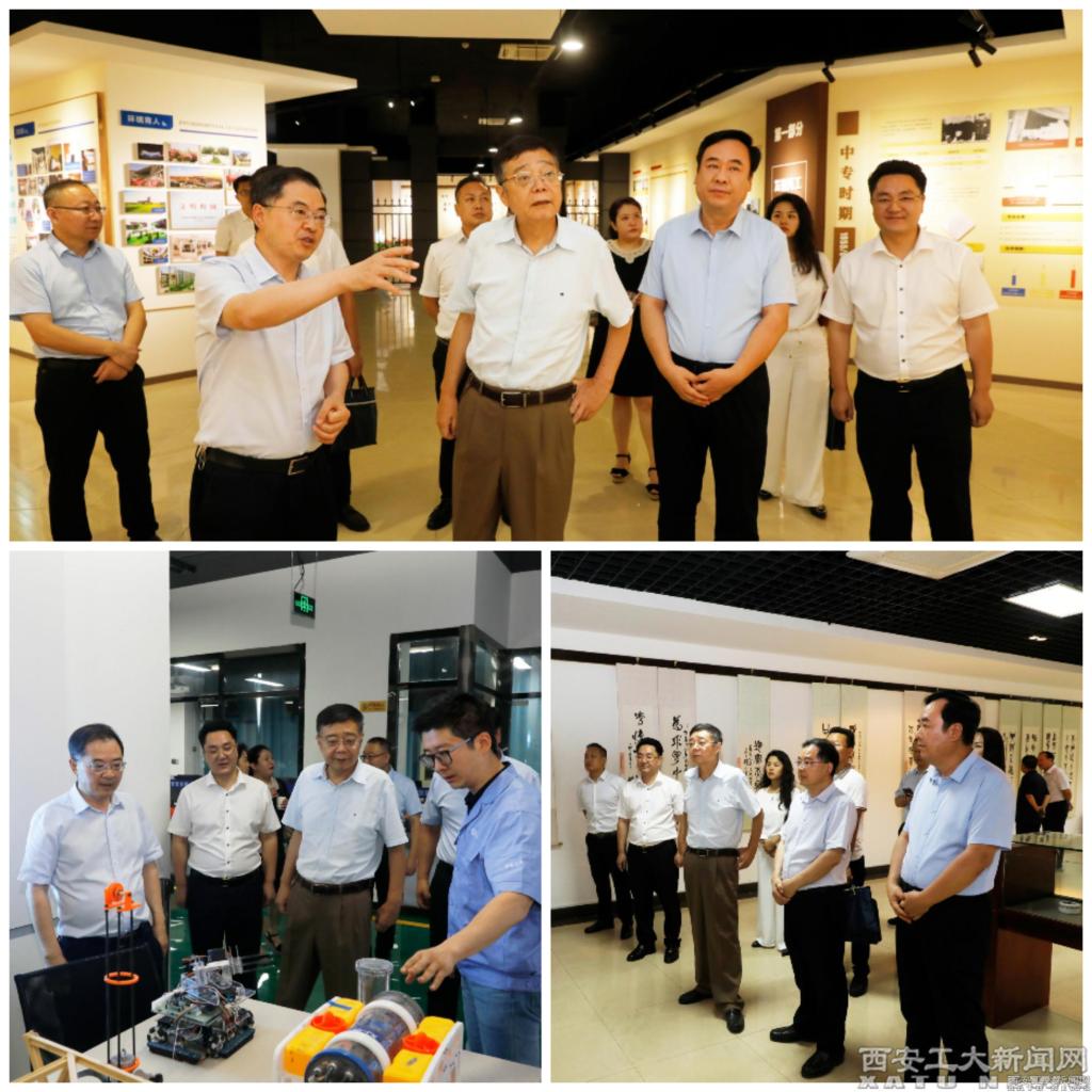 在校长赵祥模、副校长刘卜的陪同下,白阿莹一行首先参观了校史馆,刘自椟、陈泽秦书法馆和智造创新工场。