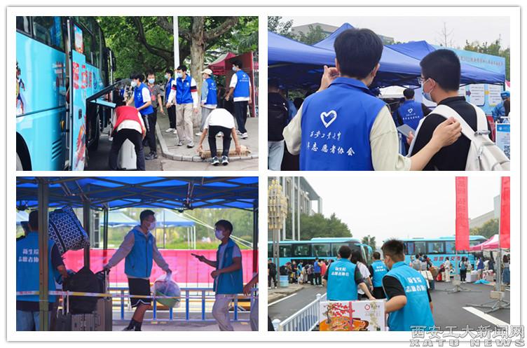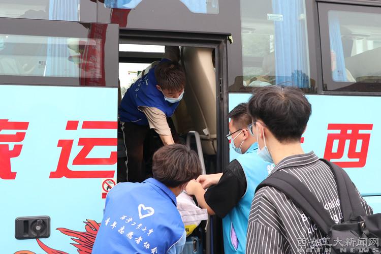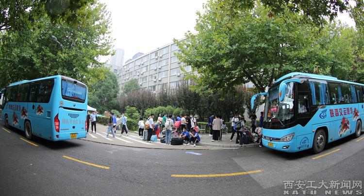 天刚蒙蒙亮,工作人员和志愿者便整装待发,准备乘校车提前抵达迎新站点,做好接站各项准备工作。校车分批次前往机场、西安北站和火车站,将同学们安全便捷地接送到两个校区。志愿者穿行于校园各处,用实际行动传递着奉献精神。