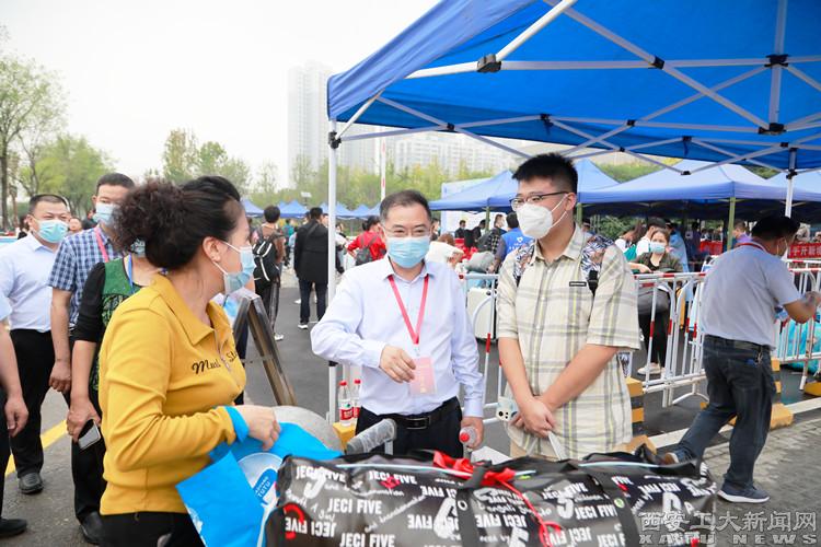 在未央校区西门新生入校口外,赵祥模同多位前来送孩子就学的家长进行了交谈,请家长对孩子在校的学习生活保障条件放心,热情邀请家长们在疫情形势平稳后入校游览。在学生公寓,赵祥模查看学生住宿相关情况,并同学生亲切交流。在超市、食堂等处,赵祥模就食品安全和物资保障等事宜做了强调和部署。