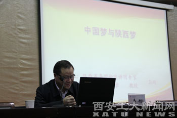 (本网讯)11月27日下午,党委组织部、党委宣传部、校党校、校团委联合邀请陕西省委理论宣讲团专家、西北大学李刚教授做题为《中国梦陕西梦》的理论学习报告会。