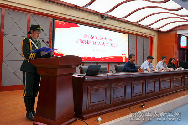国旗护卫队全体队员通过庄严宣誓和选派代表发言,表达了爱国奉献、爱军习武、爱校勤学和牢记入队誓词、捍卫国旗尊严、严格刻苦训练的决心。