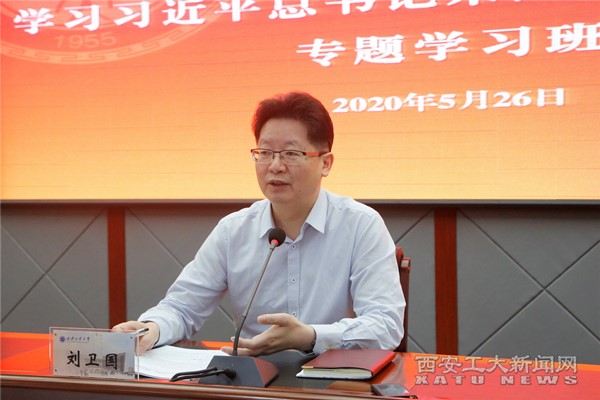 26日上午,专题学习班举行了开班式,党委副书记王军周作开班动员讲话。王军周回顾了习近平总书记来陕考察的经过,介绍了省委、省委教育工委对学习培训的有关要求和学校正处级以上干部学习习近平总书记来陕考察重要讲话的基本情况,并就学习习近平总书记来陕考察重要讲话精神提出以更严的自我要求认真学习、以更高的政治站位深入领会、以更强的责任担当贯彻落实等三点要求。