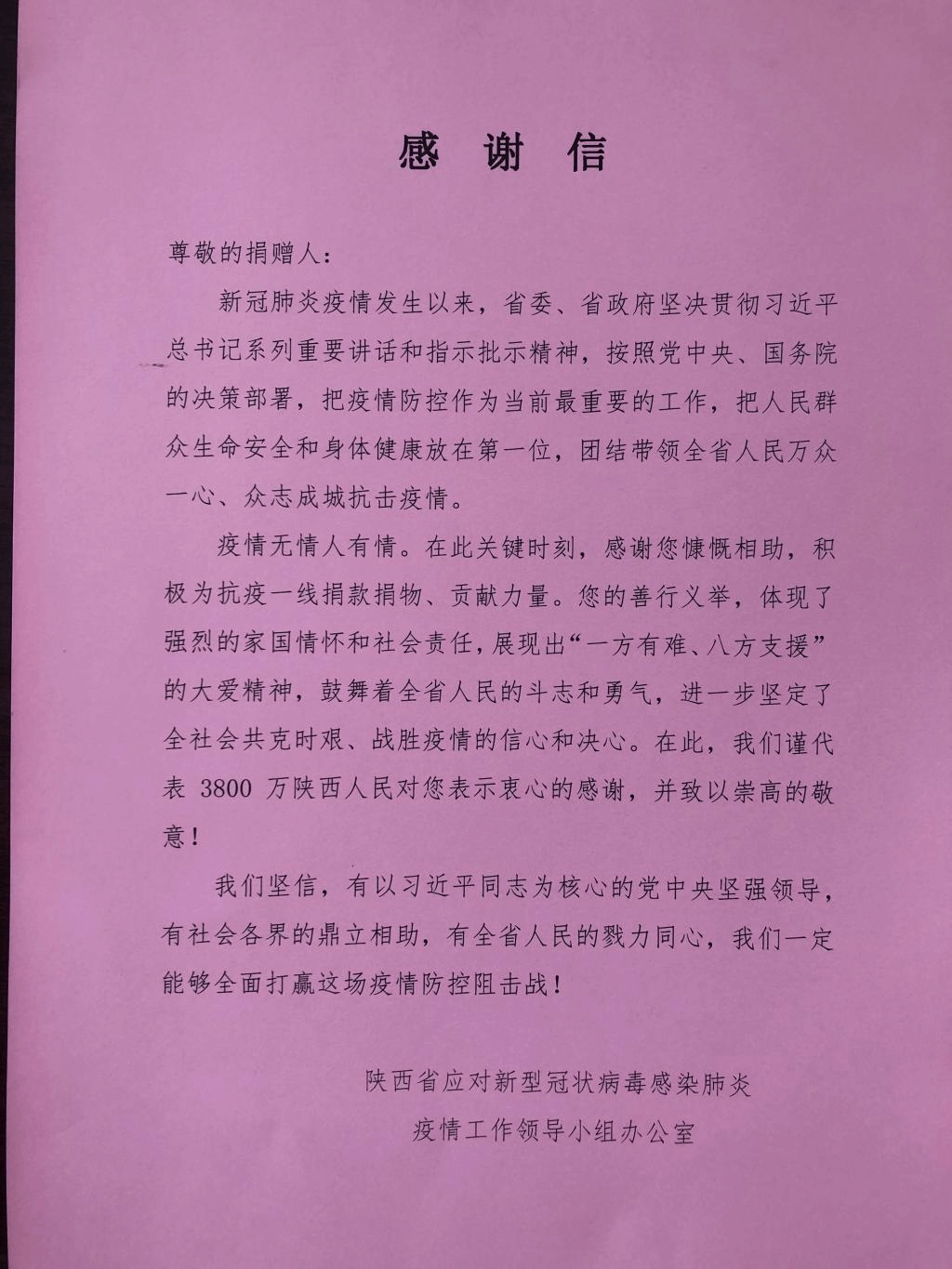 (本网讯)近日,学校将全校师生群众捐款78043.36元如数捐赠到陕西省红十字会,用于支持全省各级学校复学复课疫情防控工作。