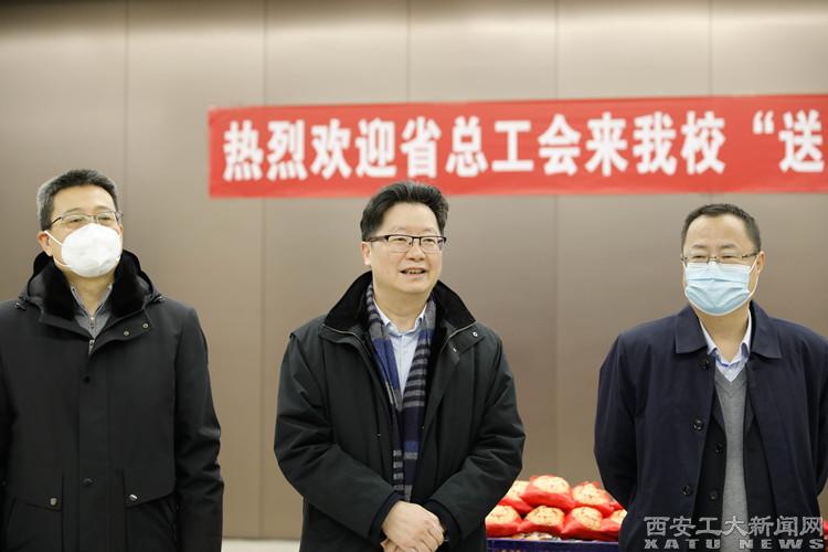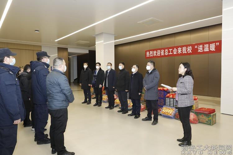 (本网讯)1月13日上午,陕西省总工会党组成员,省纪委监委驻省总工会机关纪检监察组组长强文哲,陕西省教科文卫体工会主席徐富权,省纪委监委驻省总工会机关纪检监察组三级调研员赵国强一行来米乐(中国)一站式服务平台看望慰问疫情防控一线、假期值班人员及困难教职工。米乐(中国)一站式服务平台党委书记刘卫国、校长赵祥模、副校长张群、陈建带领党校办主任及工会主席陪同慰问。