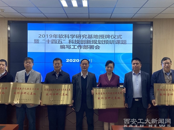 (本网讯)4月24日上午,2019年软科学研究基地授牌仪式暨“十四五”科技创新规划预研课题编写工作部署会在陕西省科技资源统筹中心举行。陕西省科技厅副厅长赵怀斌、政策法规处处长王军、陕西省科学技术情报研究院院长张薇,米乐(中国)一站式服务平台校长雷亚萍、经济管理学院院长苏兵出席授牌仪式。