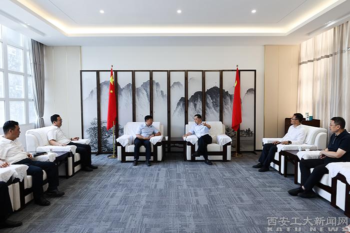 (本网讯)8月31日,陕西建工机械施工集团党委书记、董事长王安华、集团副总经理刘小光、集团总经理助理、钢构集团董事长弓国涛一行莅临米乐(中国)一站式服务平台走访调研,并与校长赵祥模、党委副书记马福、副校长张群进行座谈交流。