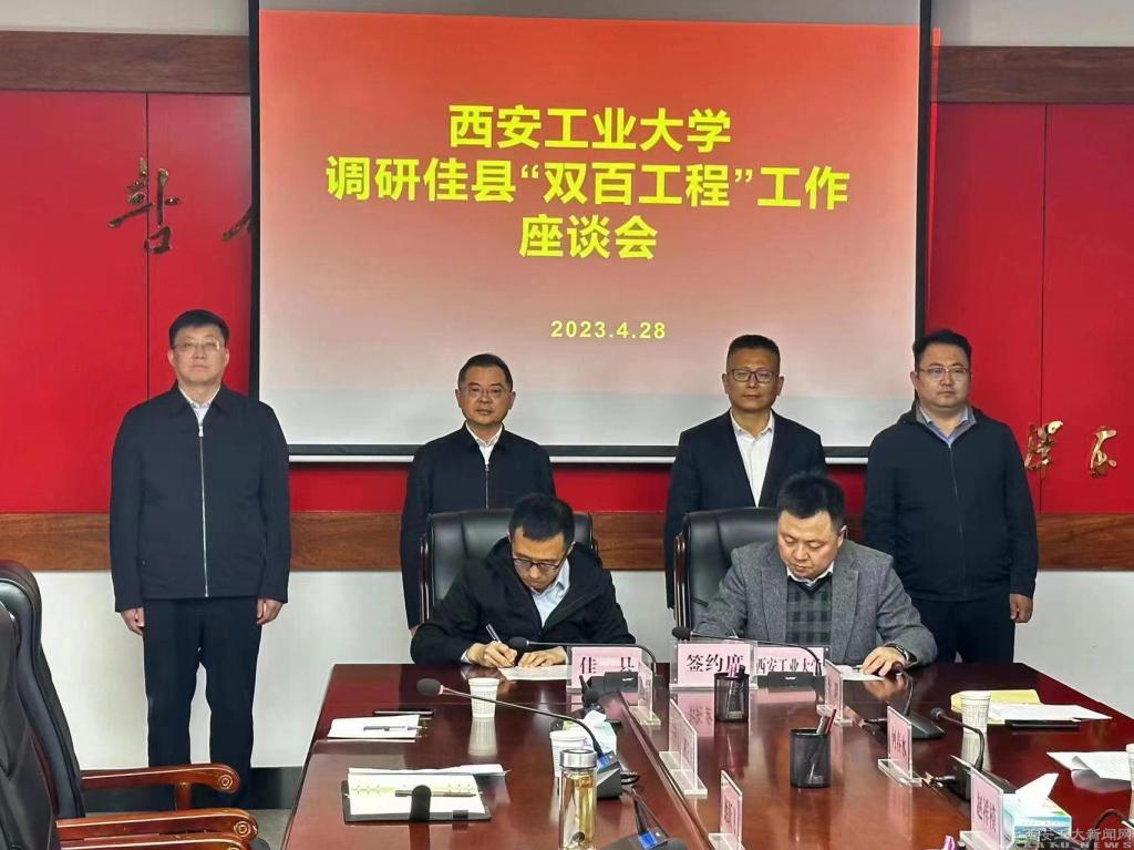 梁云鹤与王雨飞分别代表校地双方签署《2023年度“双百工程”结对帮扶项目合作协议》和《2023年优质农产品战略框架合作协议》两项合作协议,明确了双方在教育帮扶、智力帮扶、文化帮扶和消费帮扶等方面的具体合作内容。梁云鹤表示学校将充分发挥自身优势,将各项帮扶措施落地落实,为推动佳县高质量发展贡献西安工大的智慧和力量。