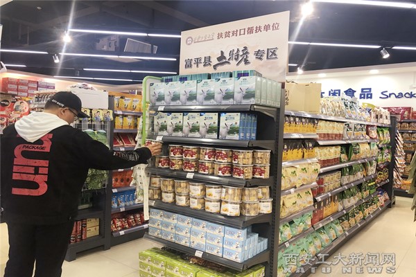 (本网讯)为深入贯彻习近平总书记在解决“两不愁三保障”突出问题座谈会上关于“组织消费扶贫”的重要指示精神,响应党中央和国务院关于深入开展消费扶贫助力打赢脱贫攻坚战的号召,11月16日,富平县土特产专柜在米乐平台校园超市内正式开张运营。琼锅糖、棒棒馍、羊奶粉、羊奶片等20多种富平地道农特产琳琅满目。