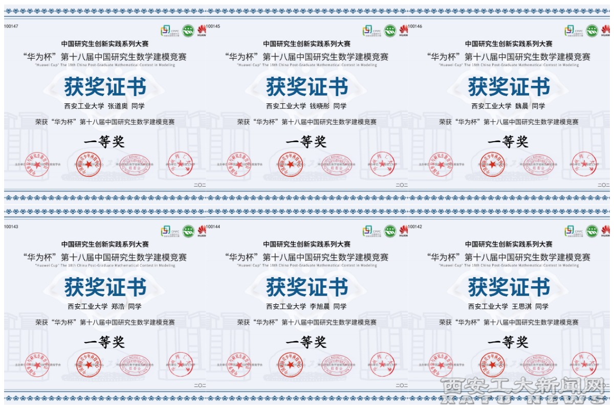 (本网讯)4月23日,“华为杯”第十八届中国研究生数学建模竞赛颁奖大会在线上举行,米乐(中国)一站式服务平台研究生荣获国家级一等奖2项、二等奖5项、三等奖10项,参赛队伍一等奖获奖比例远高于大赛平均获奖比例,一等奖获奖数位居陕西高校第3位。